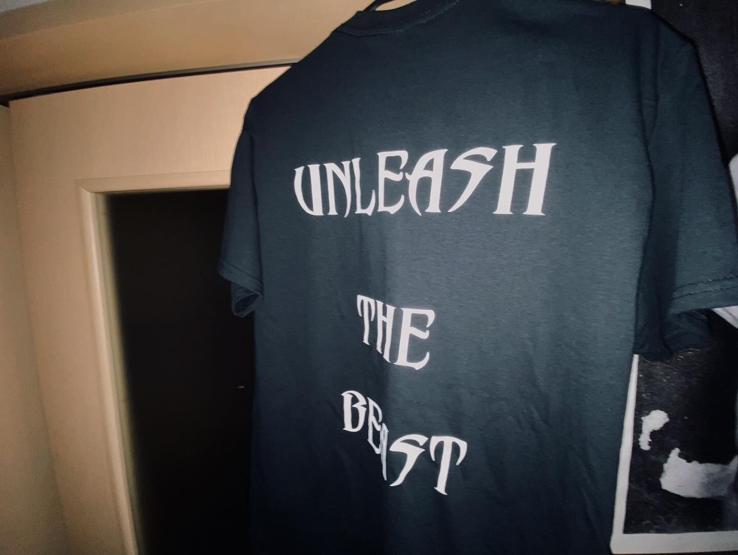 前面左胸にLOGOのプリント・背面にはUNLEASH THE BEASTのプリント
